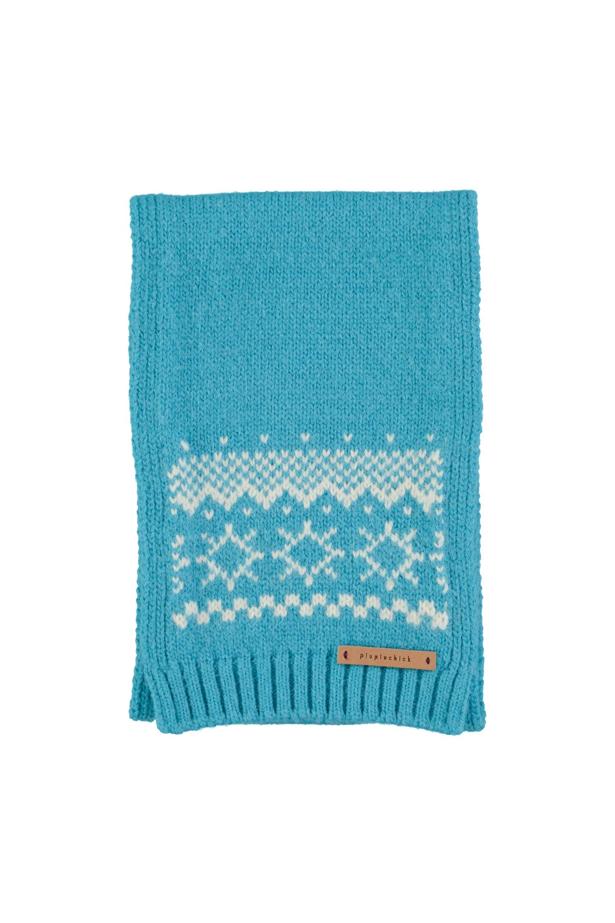 Knitted scarf with jacquard detail, detailed with logo leather label.