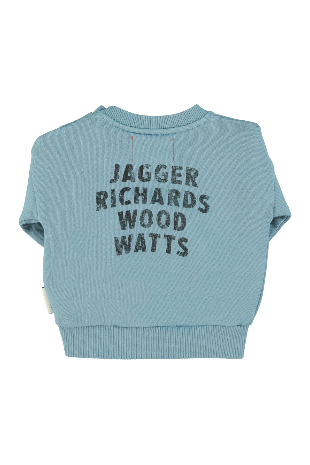 Unisex sweatshirt with frontal and back prints. Carded organic cotton fleece. Ribbed cufs. Baby sizes have buttons on the