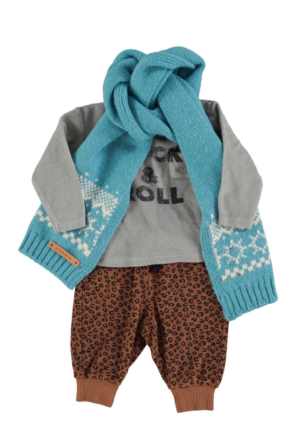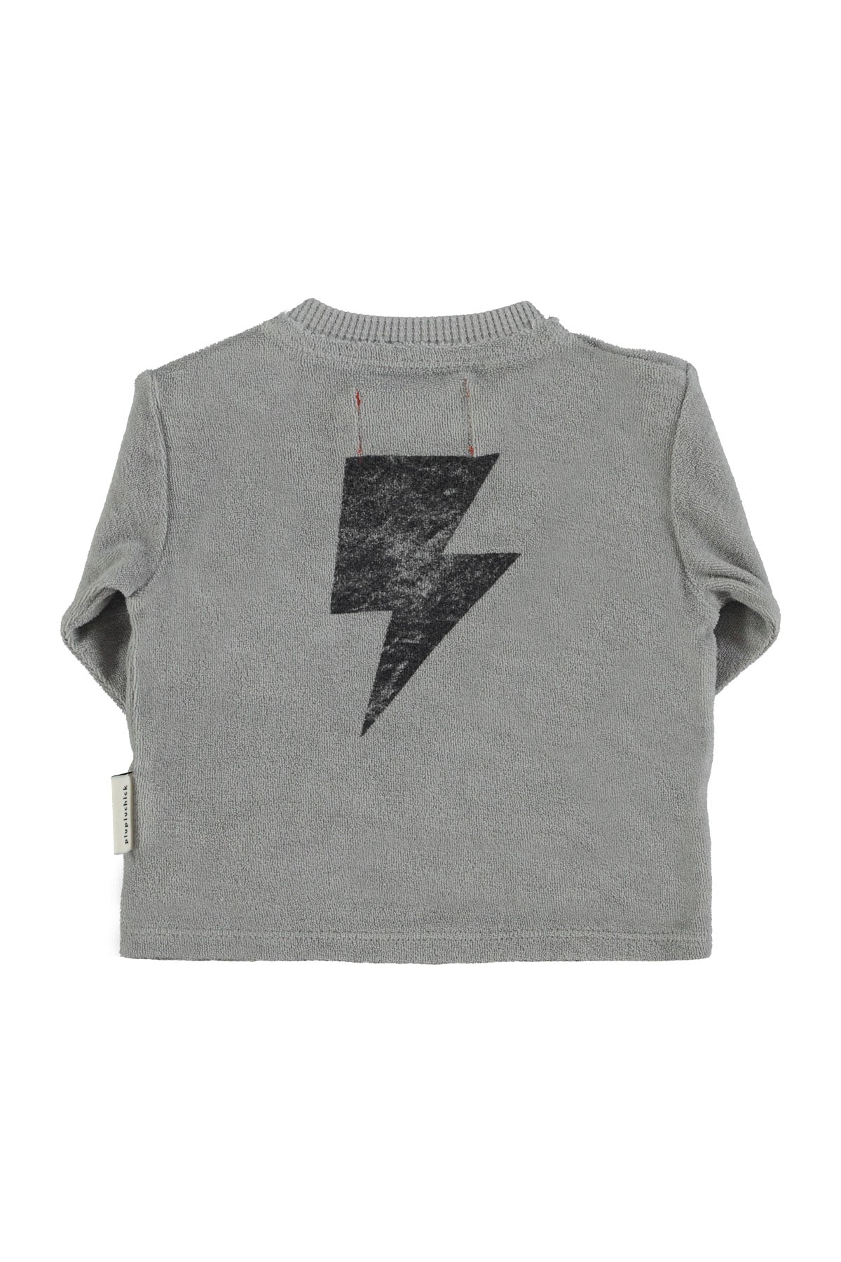 Long sleeve in terry cotton with round collar and pocket on chest. Detailed with front and back print. Buttons on shoulder for baby