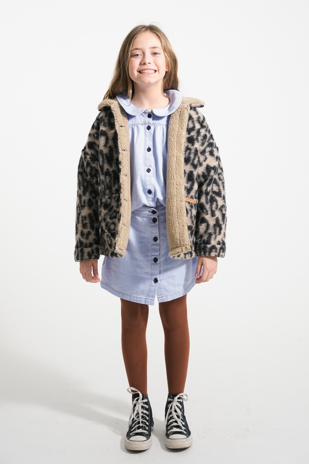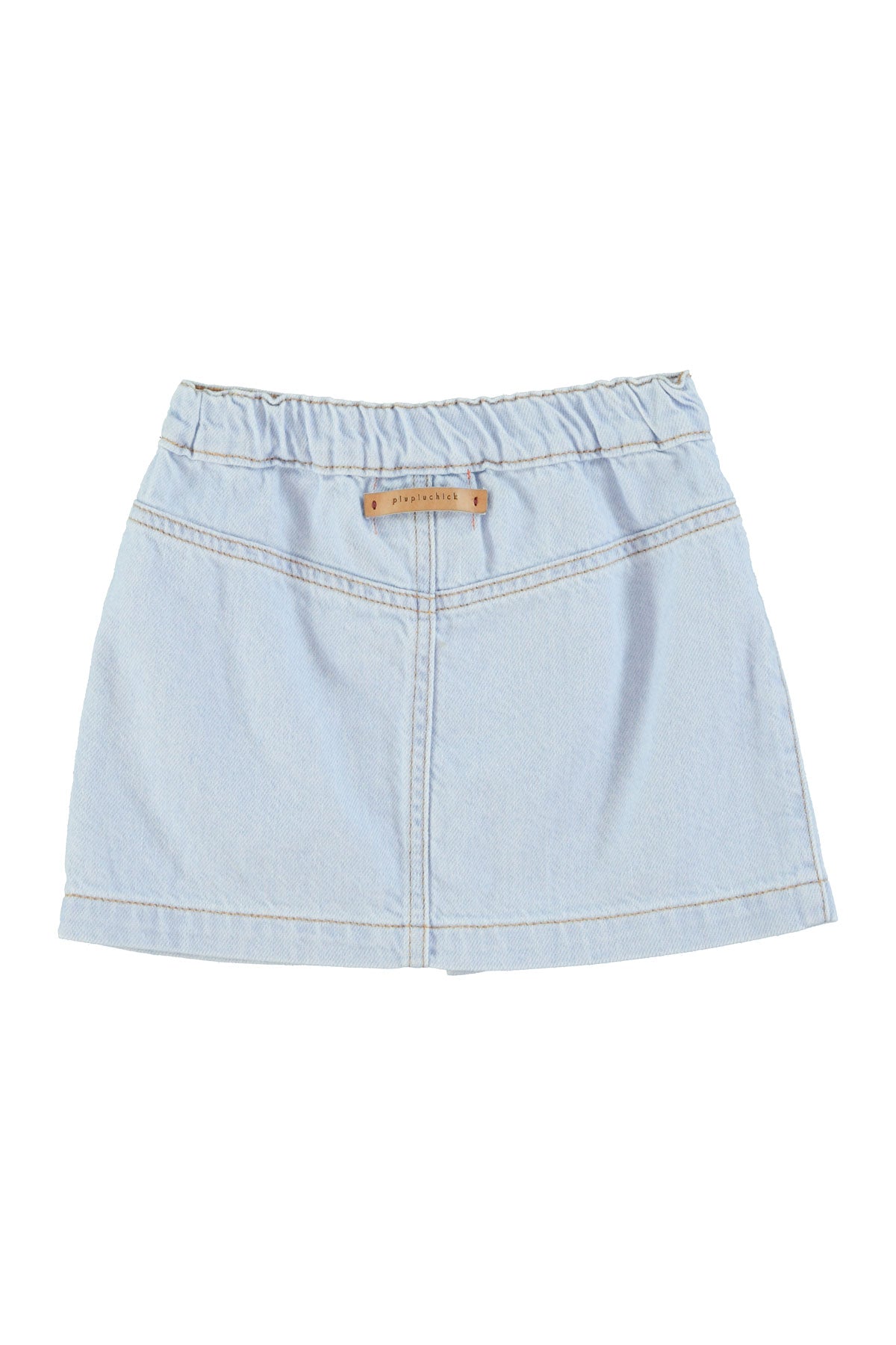 Short skirt with black buttons on the front. Adjustable waist. Detailed with leather logo on the back.