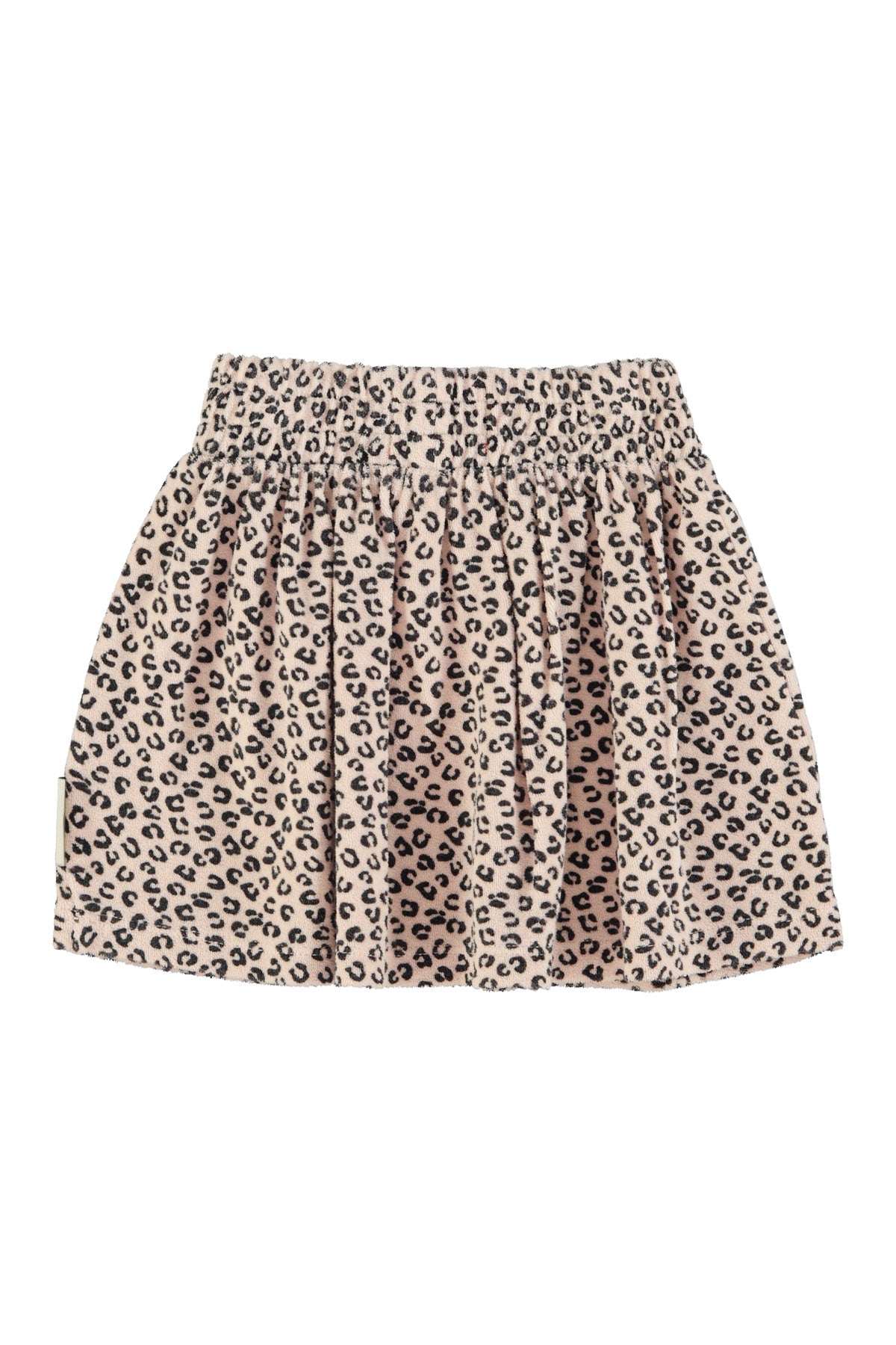 Short skirt in terry cotton. Pleated effect. Elastic waist.