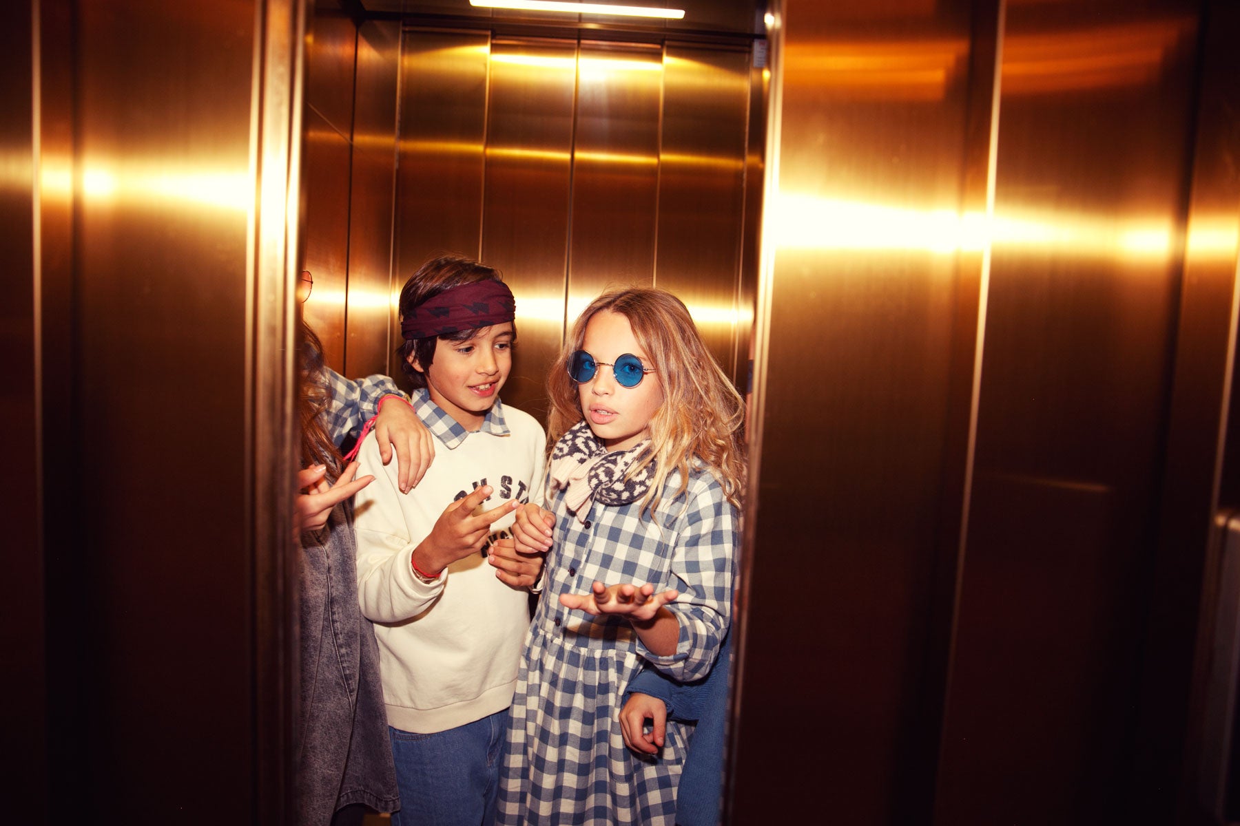 Short shirt dress in cotton flannel. Black buttons on the front and two patch front pockets. Pleated effect.
