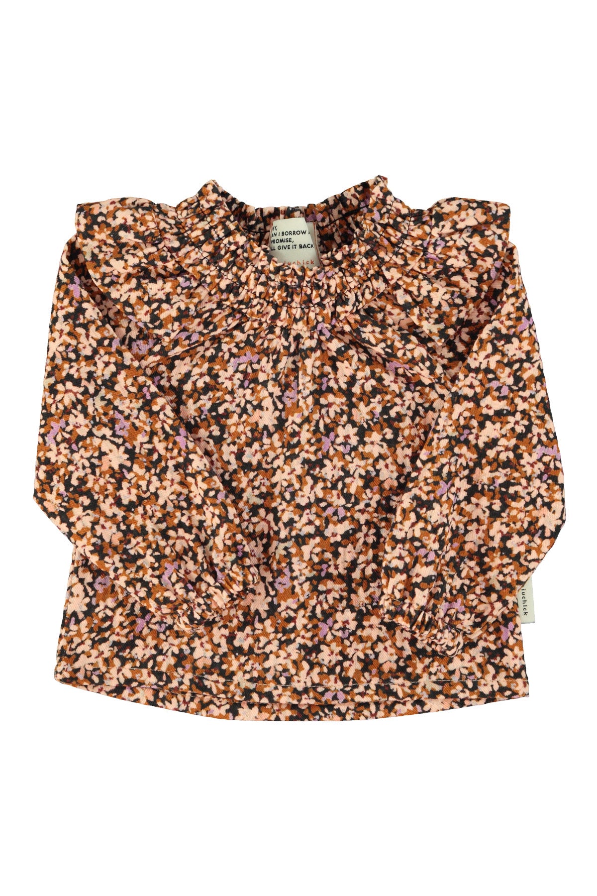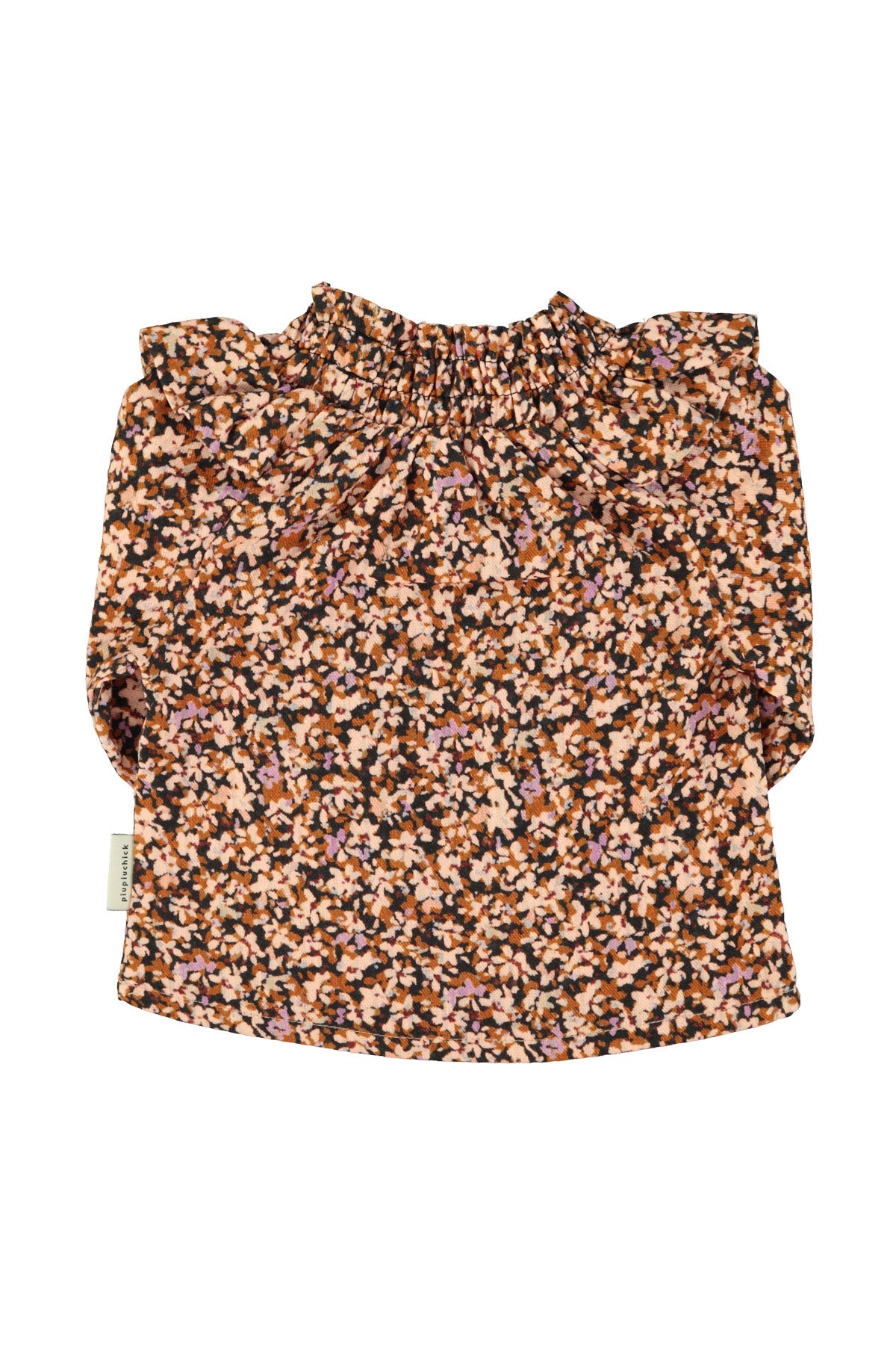 Shirt with a round neck and long sleeves with elasticated trims. Featuring ruffle appliqués on the neck and shoulders.