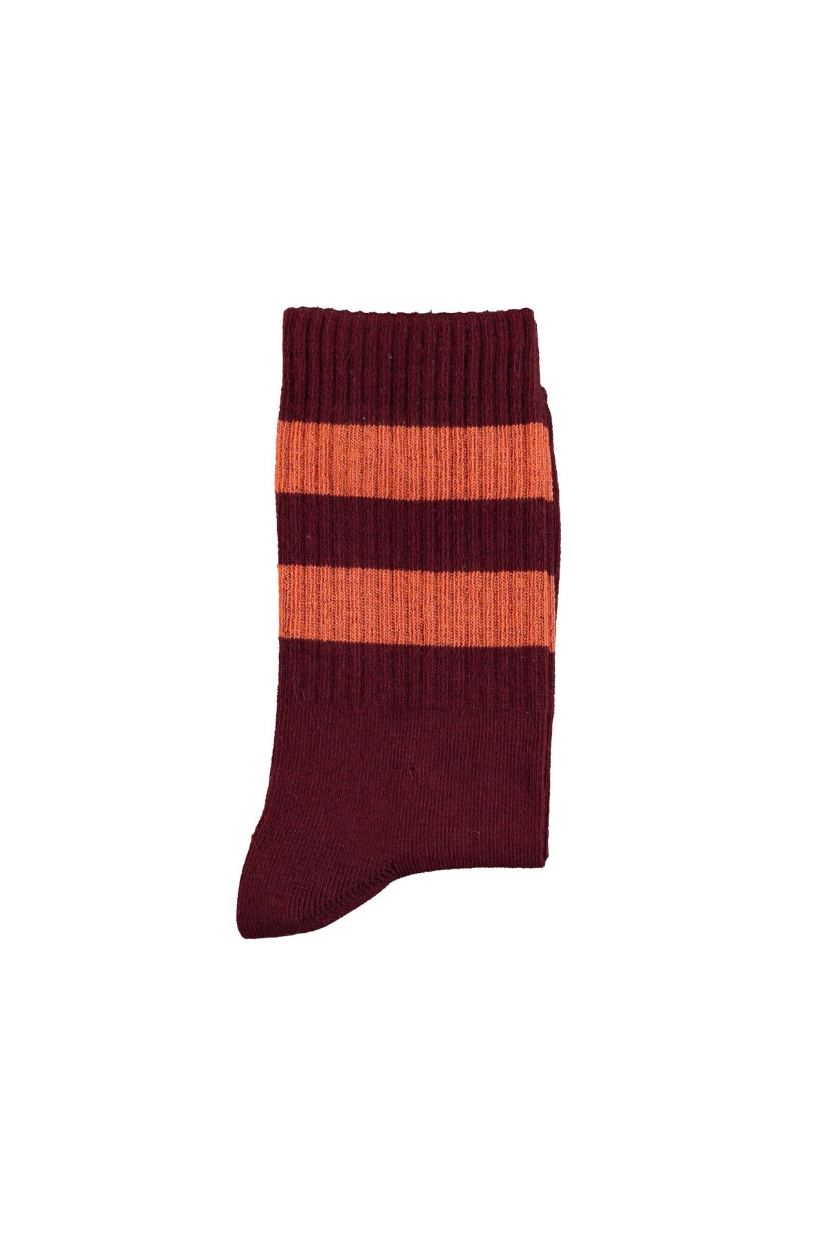 Socks with striped print. Color/Fabric: bordeaux | cotton Composition: 100% PES Care Instructions: Wash warm (max 40ºC) . Do not bleach . Do not tumble dry . Iron cool (max 110ºC) . Do not dry cleanMade in Portugal