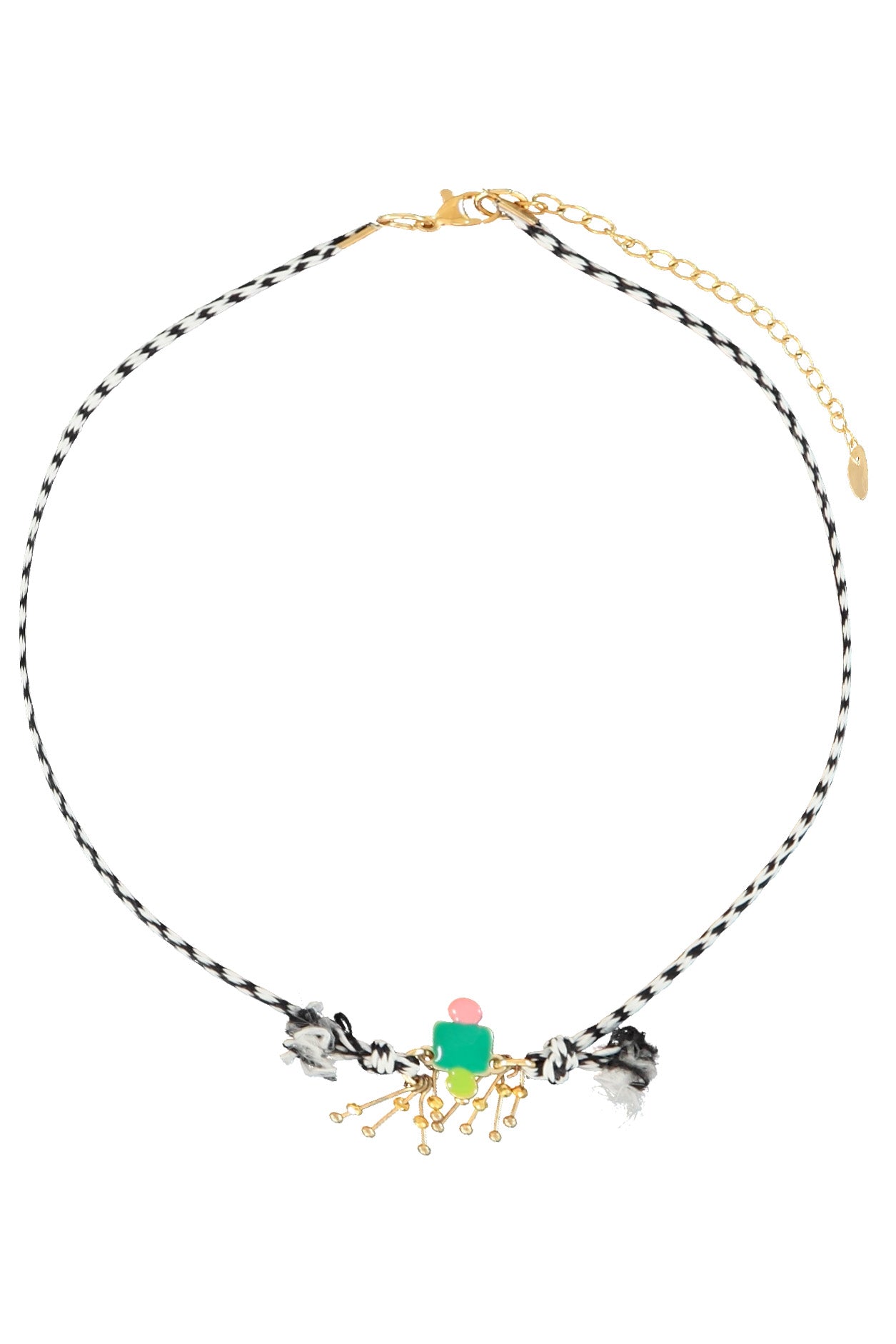 Add a splash of sparkle to your look with this playful necklace featuring a two-tone cord woven. The colourful enamel pendant adds a fun pop of color, while the golden closure ensures a secure fit. Perfect for brightening up any outfit with a touch of shimmer and charm.