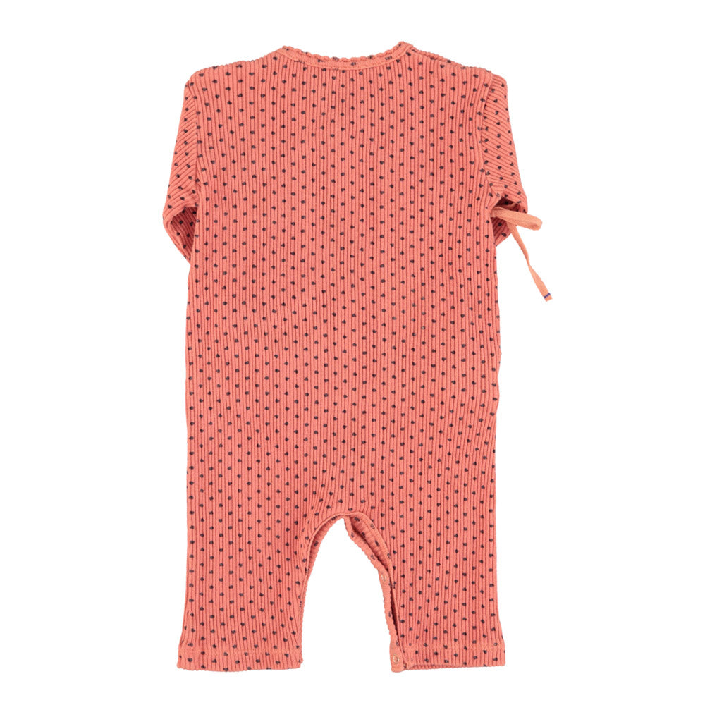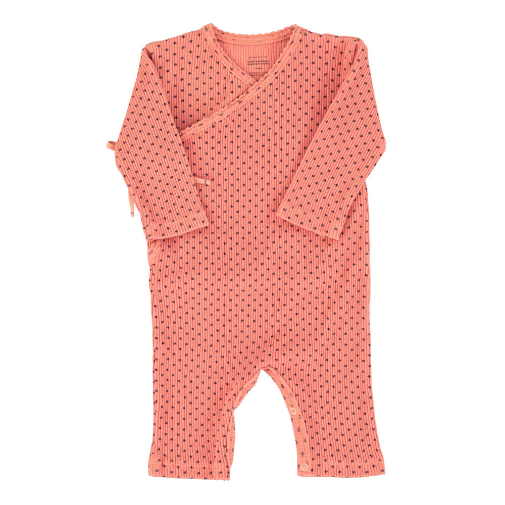Newborn longsleeve babygrow in ribbed jersey. Crossover neckline with a small ribbon to adjust. Press-studs at the legs for easy opening.