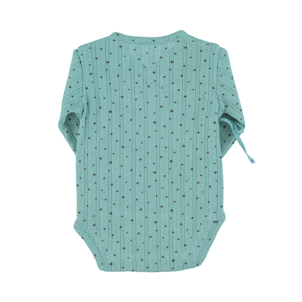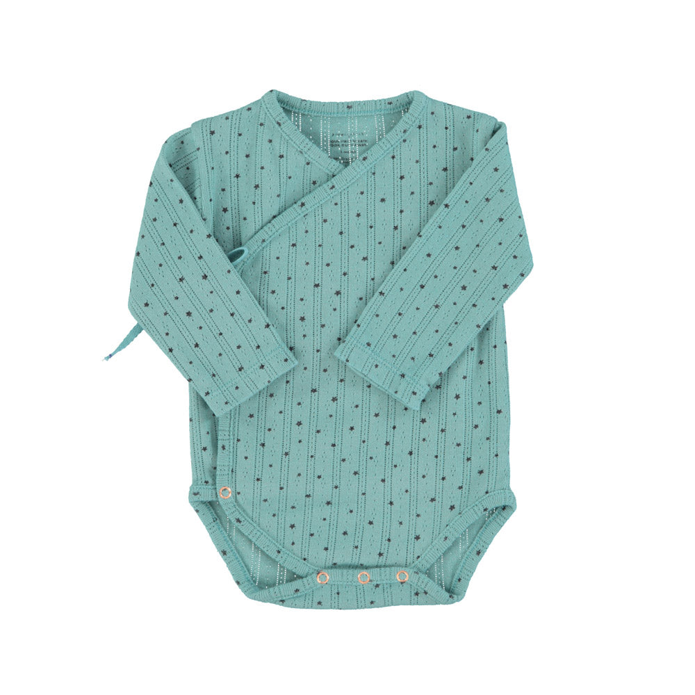 Newborn body in ribbed jacquard. Crossover neckline with a small ribbon to adjust, long sleeves and press-studs at the crotch for easy opening.