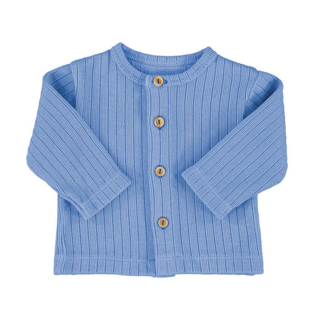 Newborn cardigan with wood buttons in the front.