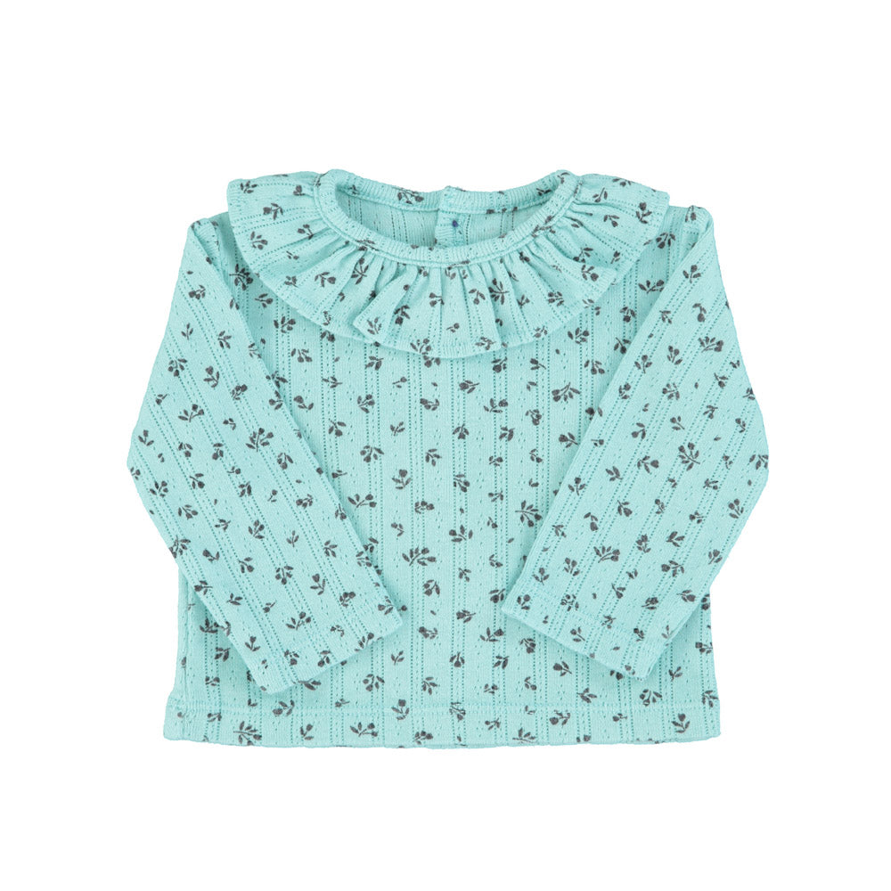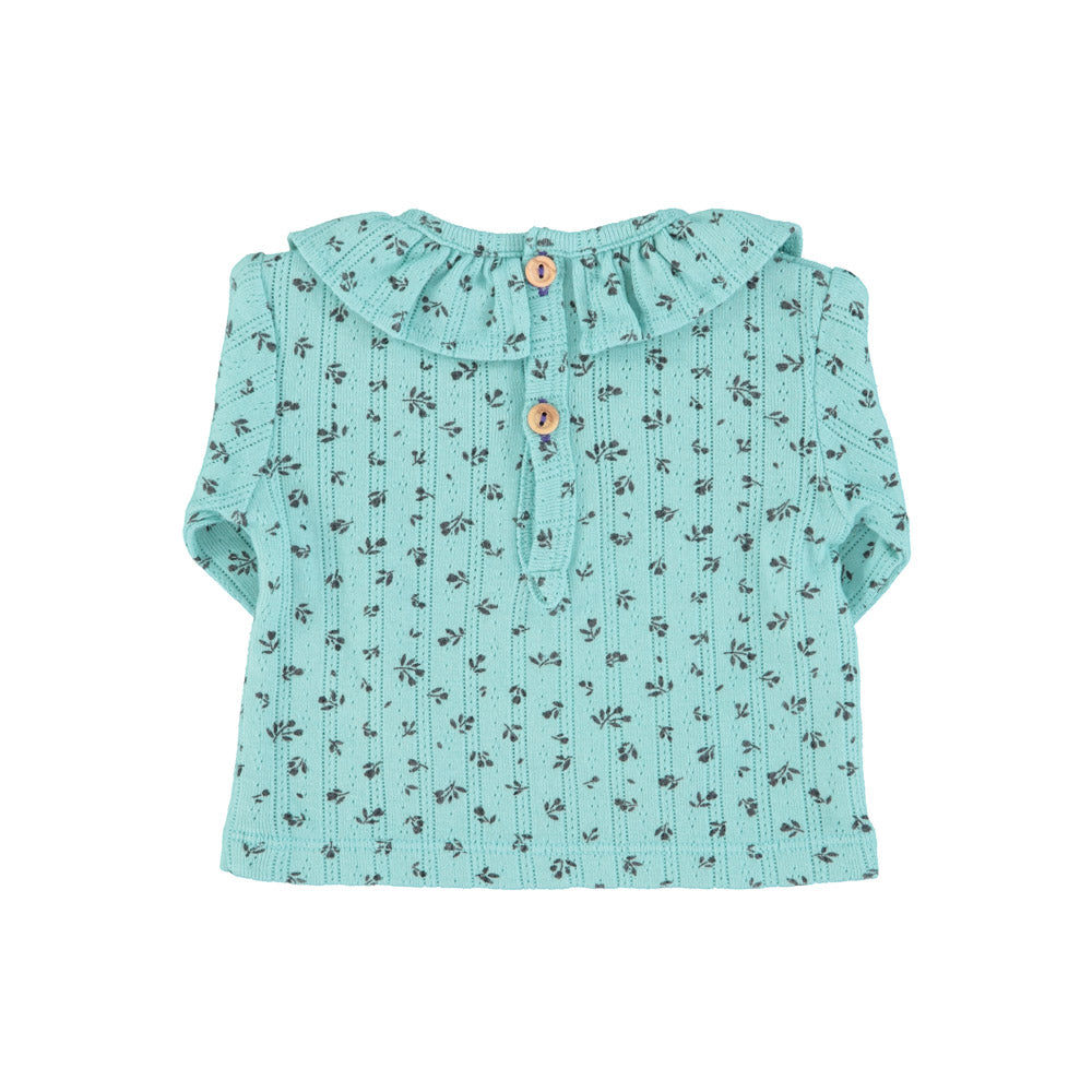 Newborn shirt in ribbed jacquard with frilled collar. Wood buttons in the back.