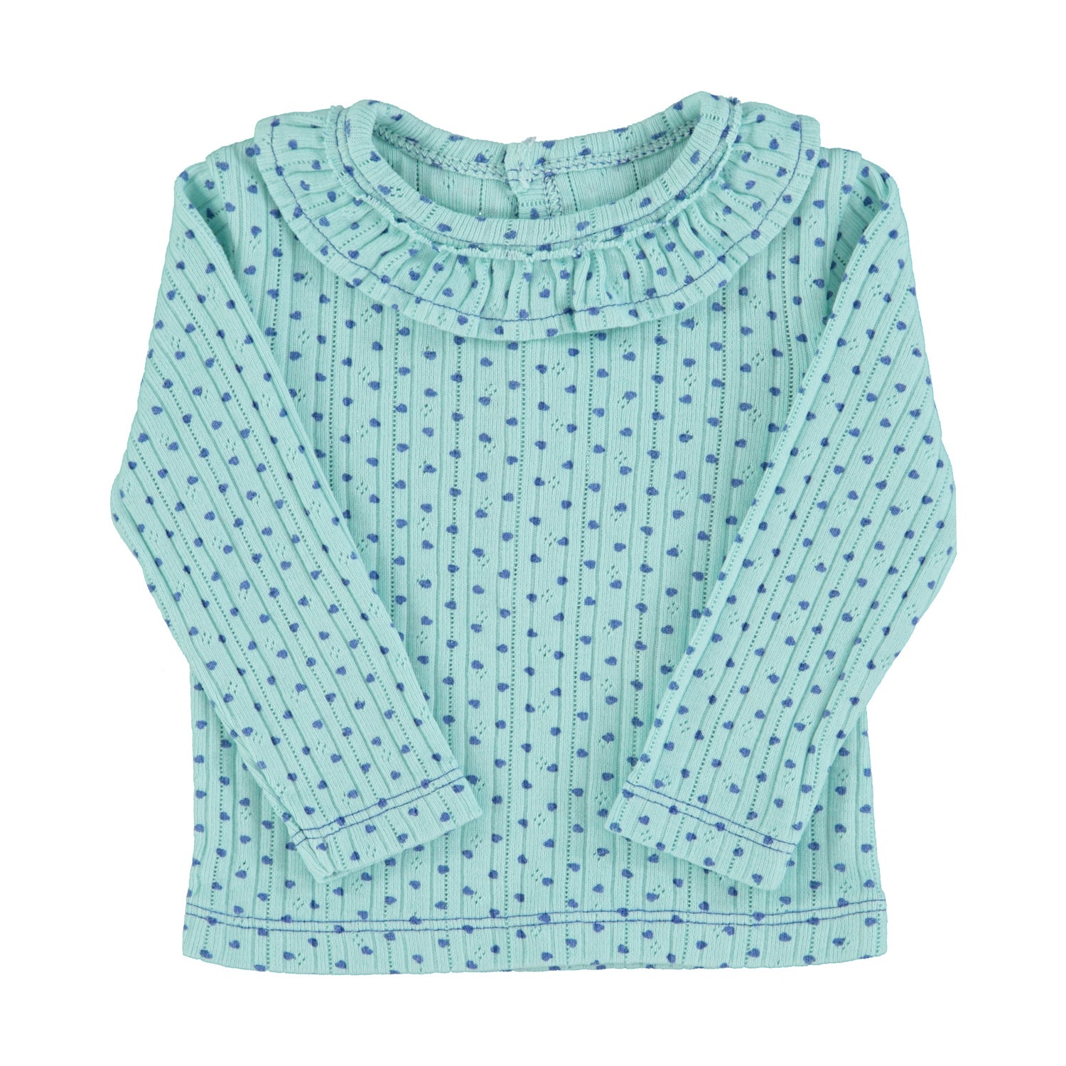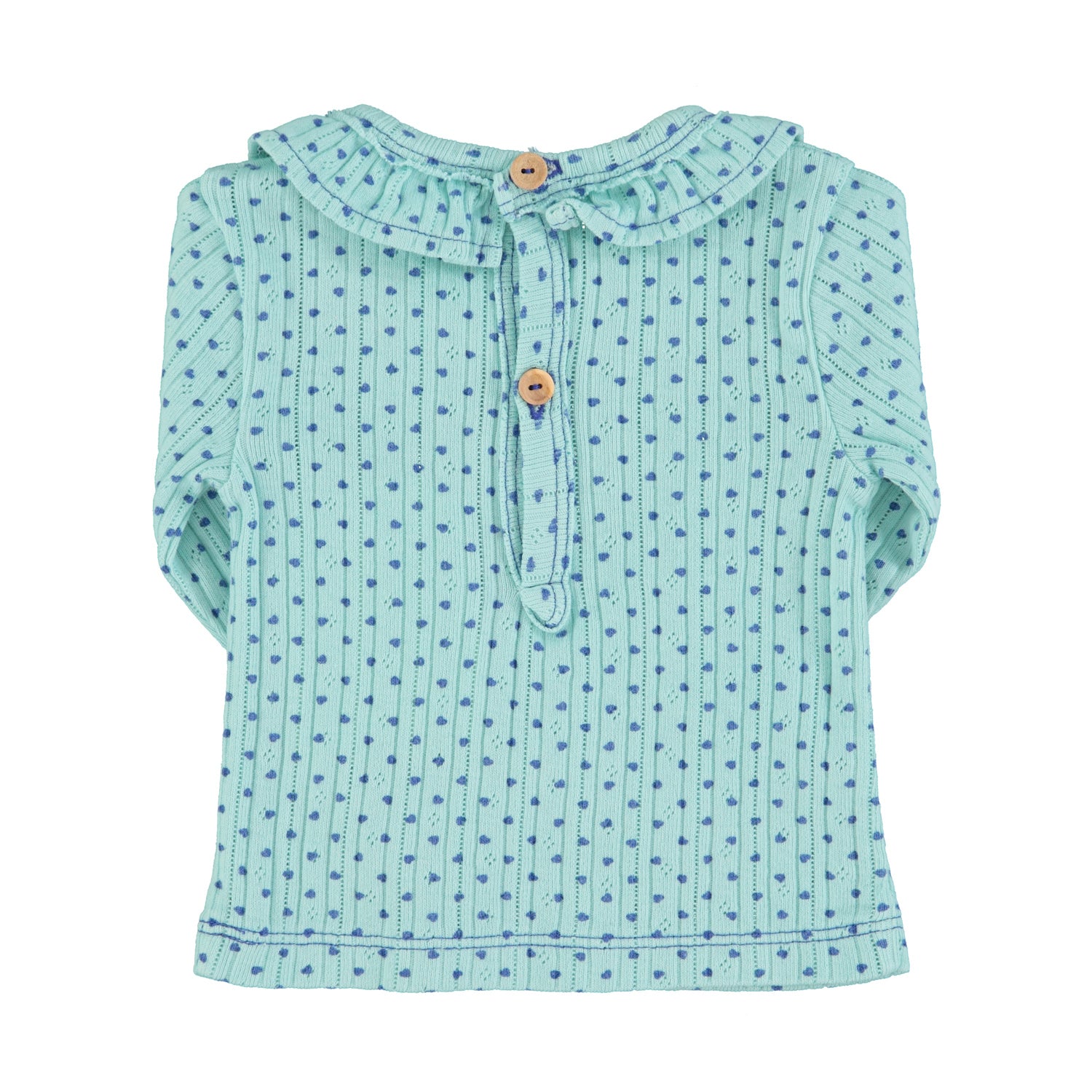 Newborn shirt in ribbed jacquard with frilled little collar. Wood buttons in the back.
