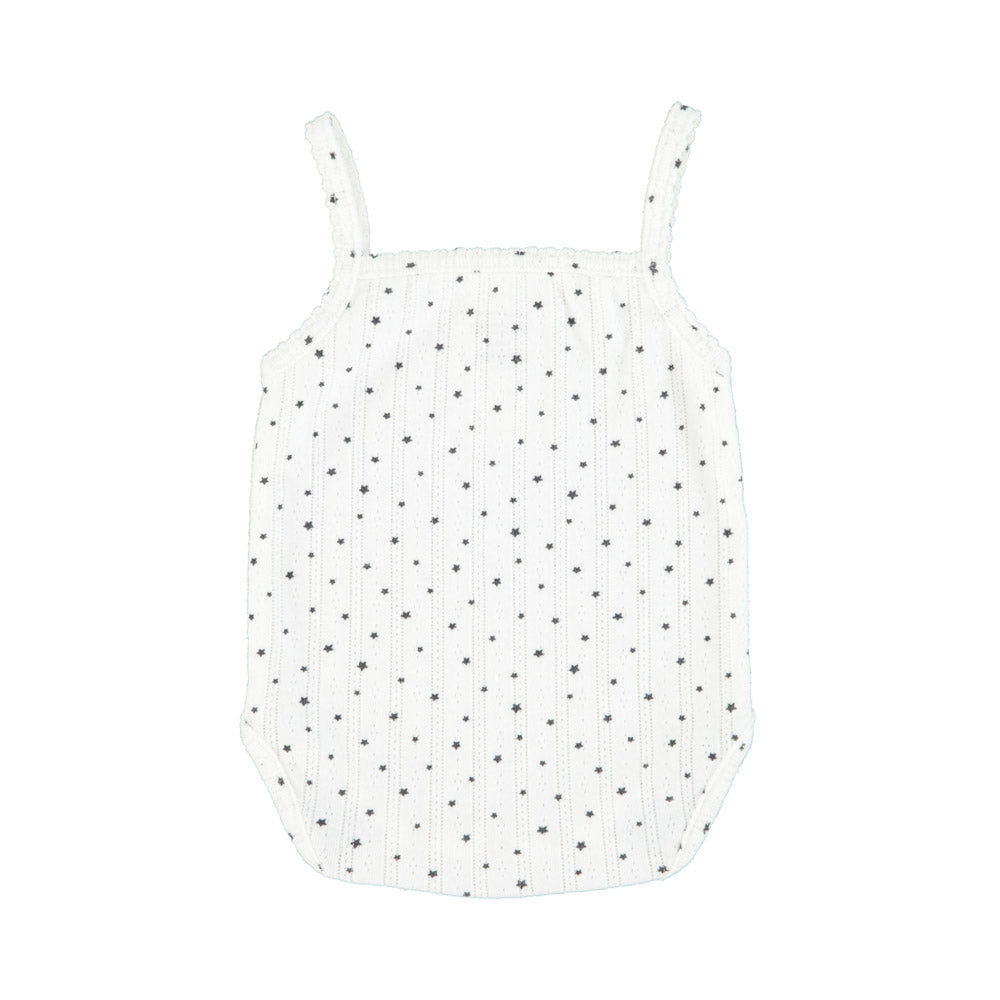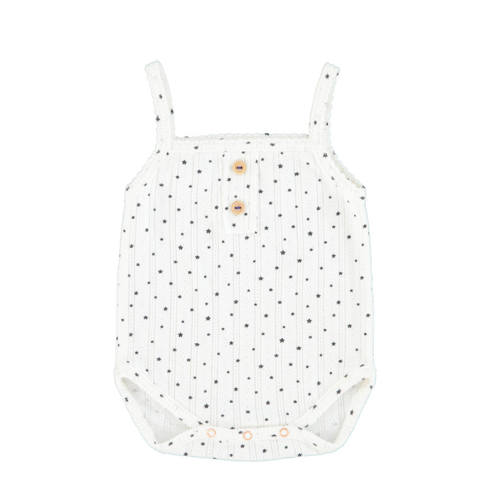 Newborn sleeveless body in ribbed jacquard. Press-studs at the crotch for easy opening. Detailed with wood buttons on the front.