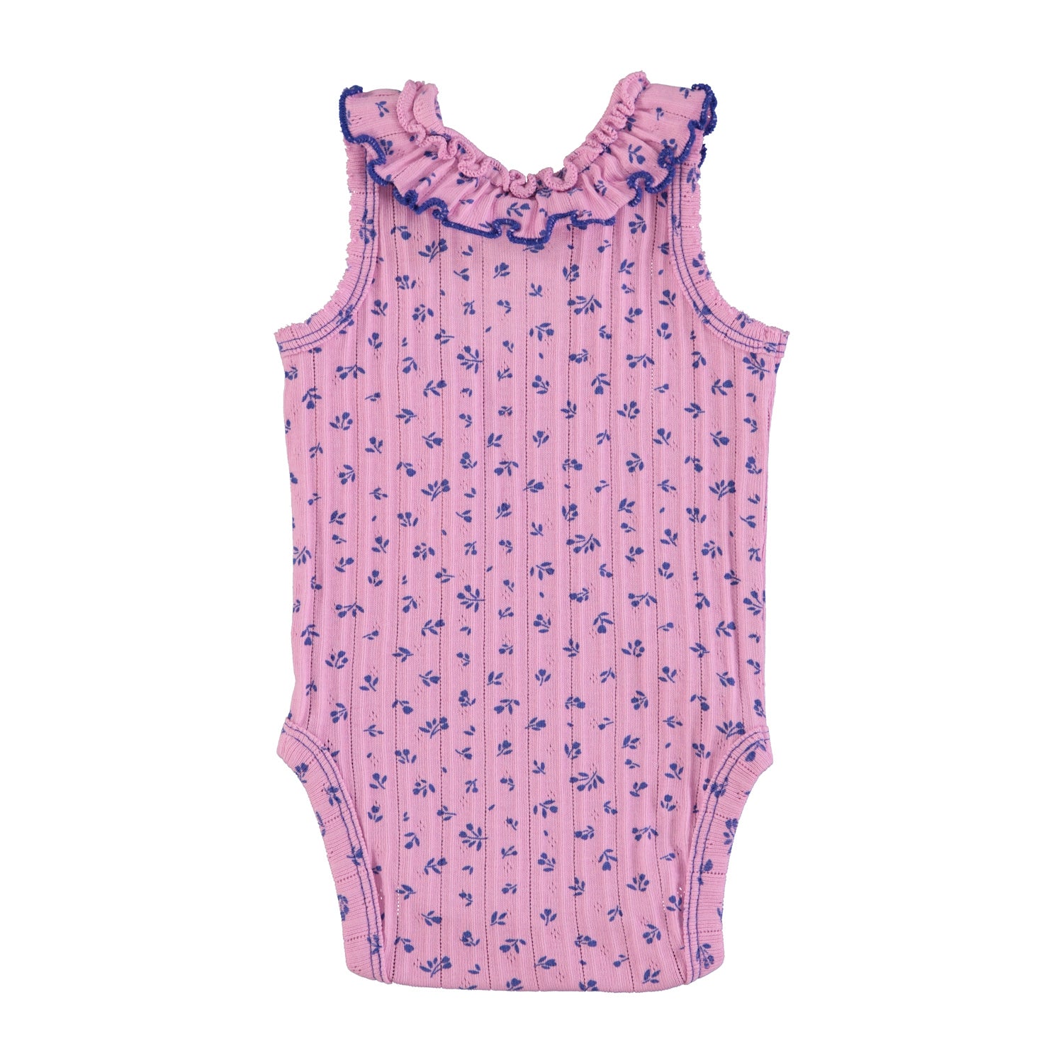 Newborn body in ribbed jacquard with collar. Press-studs at the crotch for easy opening. Detailed with raw edge.