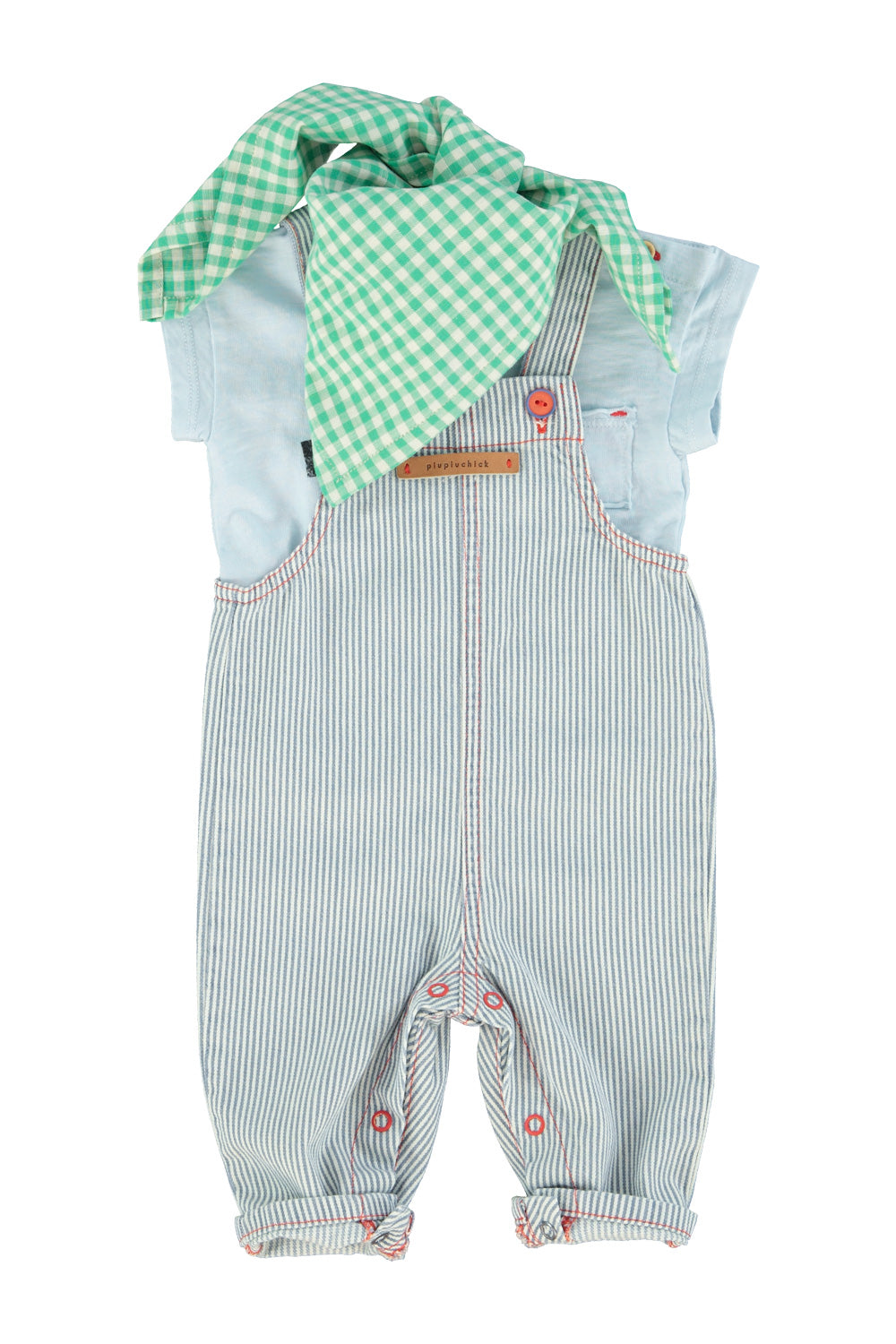 Baby dungarees with press studs at the crotch for easy opening. Adjustable straps with wood buttons. Detailed with leather logo and back pocket with embroidered red logo.