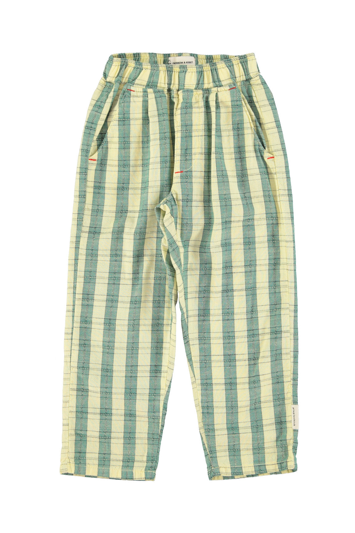Trousers with elastic waist, lateral pockets.