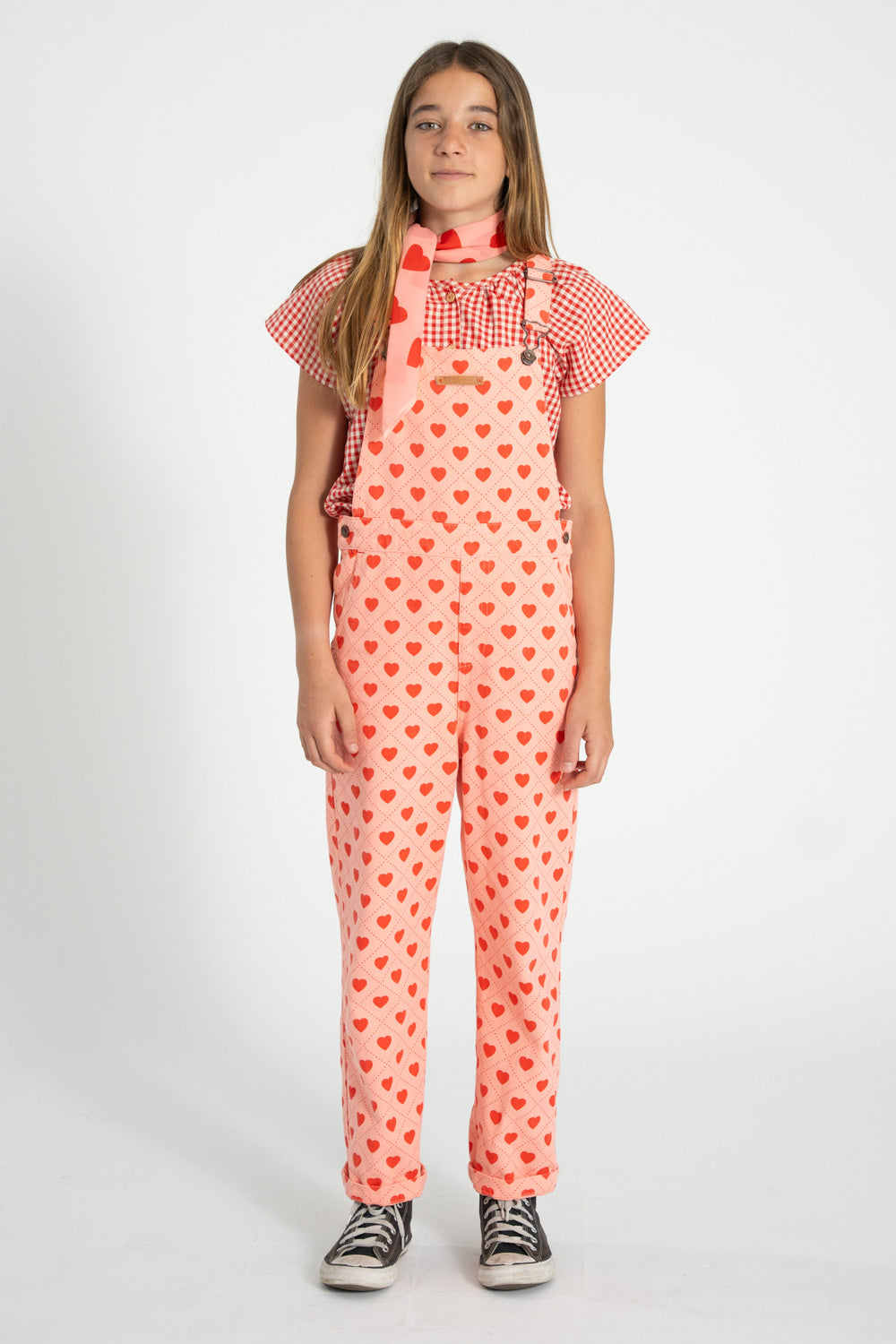 Dungarees with adjustable straps. Detailed with leather logo in the chest pocket.