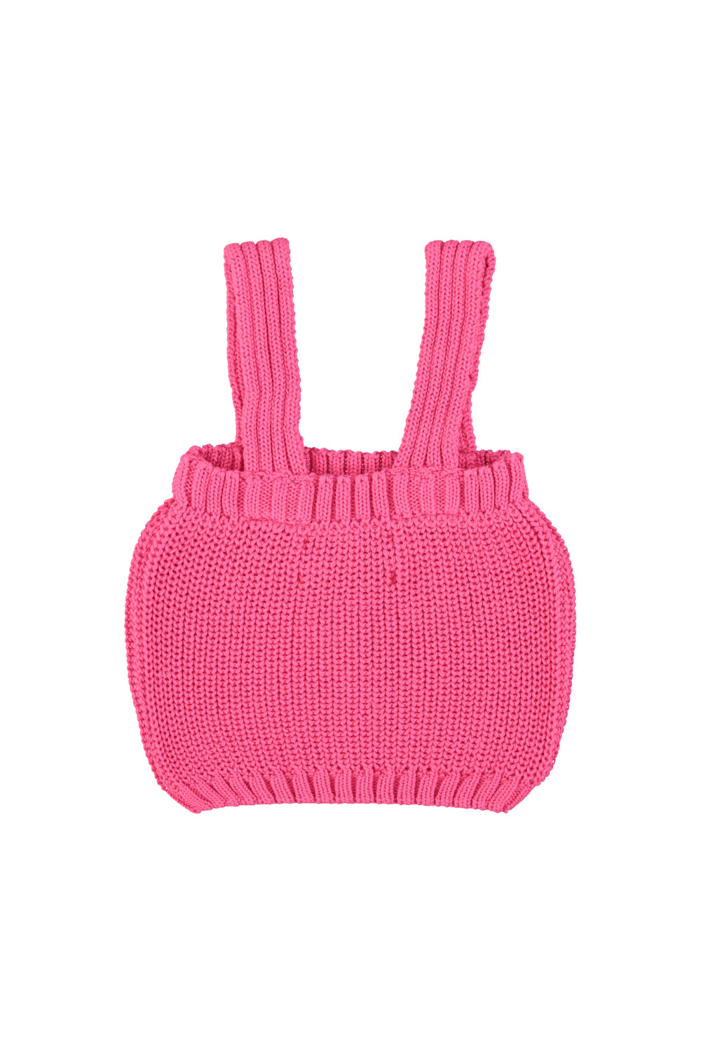 Knitted top with straps and ribbed ending. Front print. Detailed with leather logo.