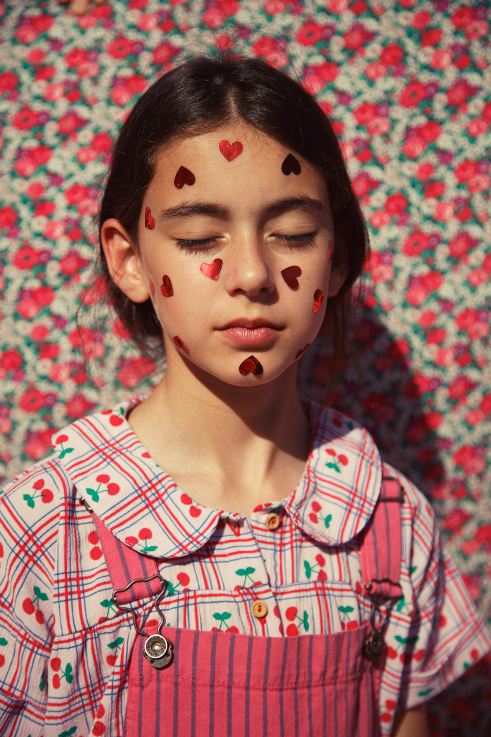Peter Pan collar shirt with short sleeves. Wood buttons on front. Pleated effect.