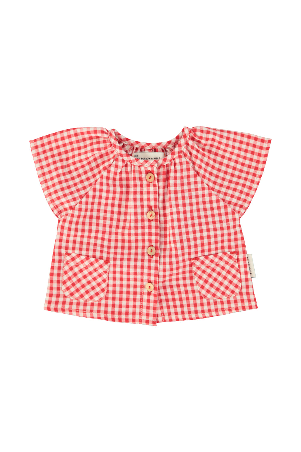 Blouse with butterfly sleeves and pleat effect, patch pockets and wood buttons on the front