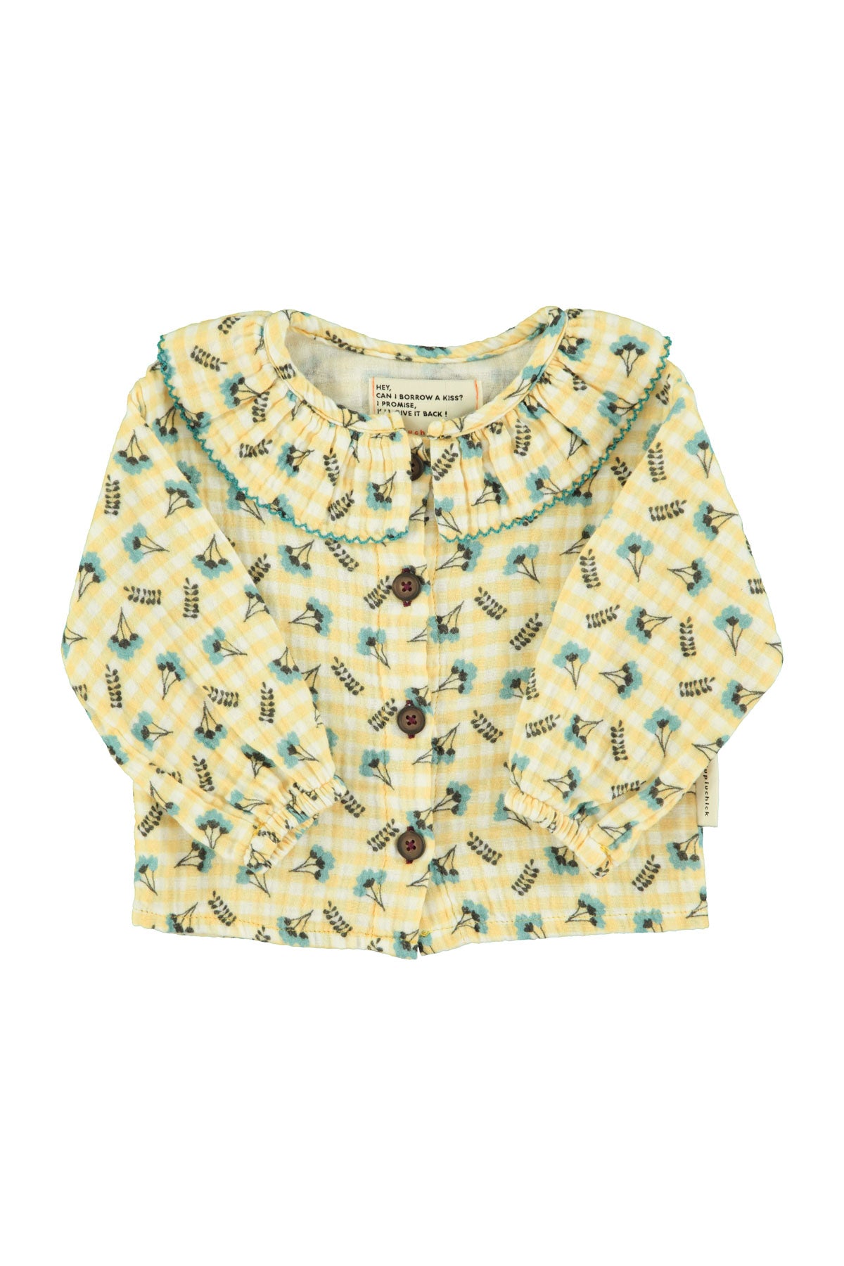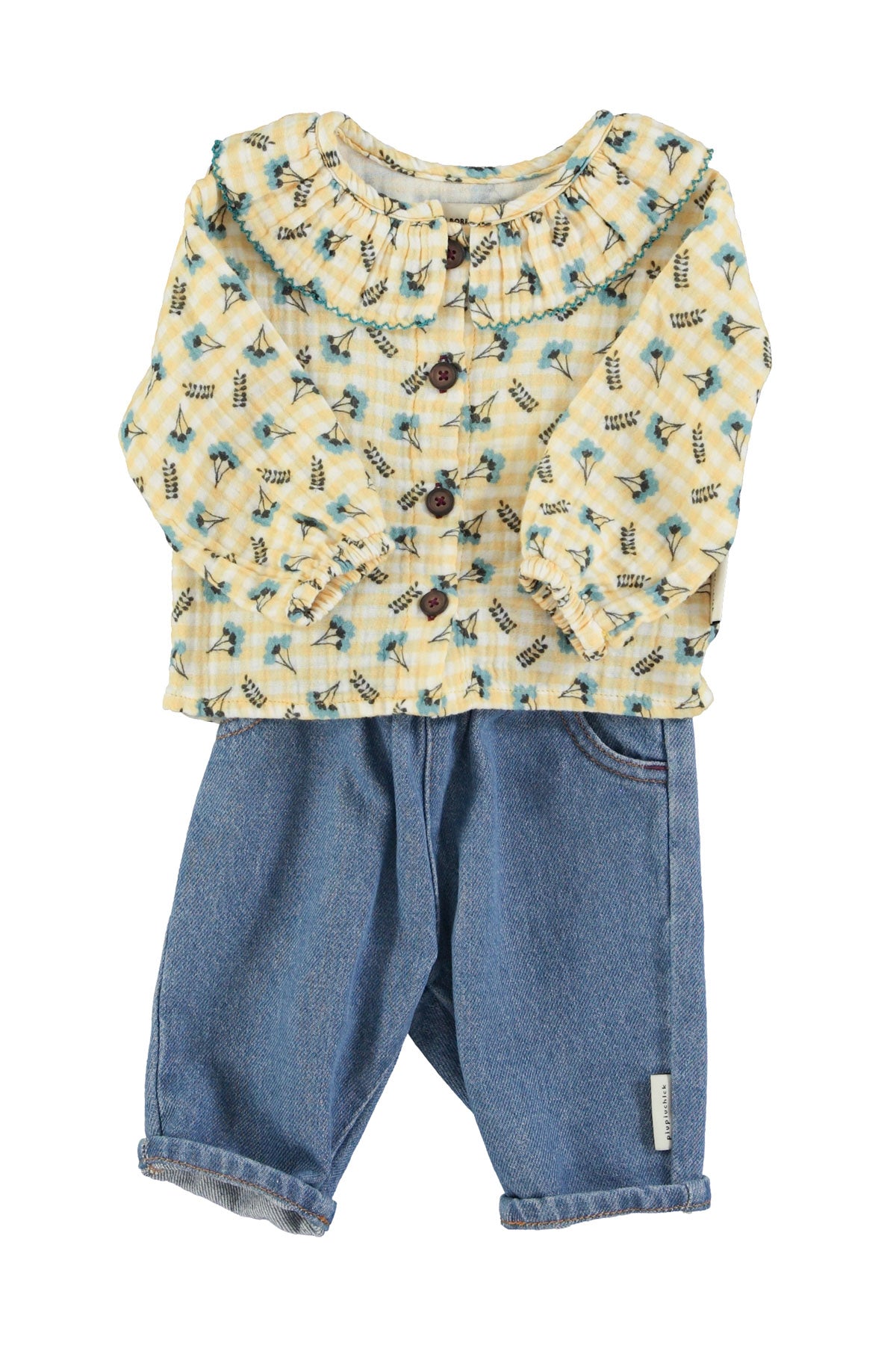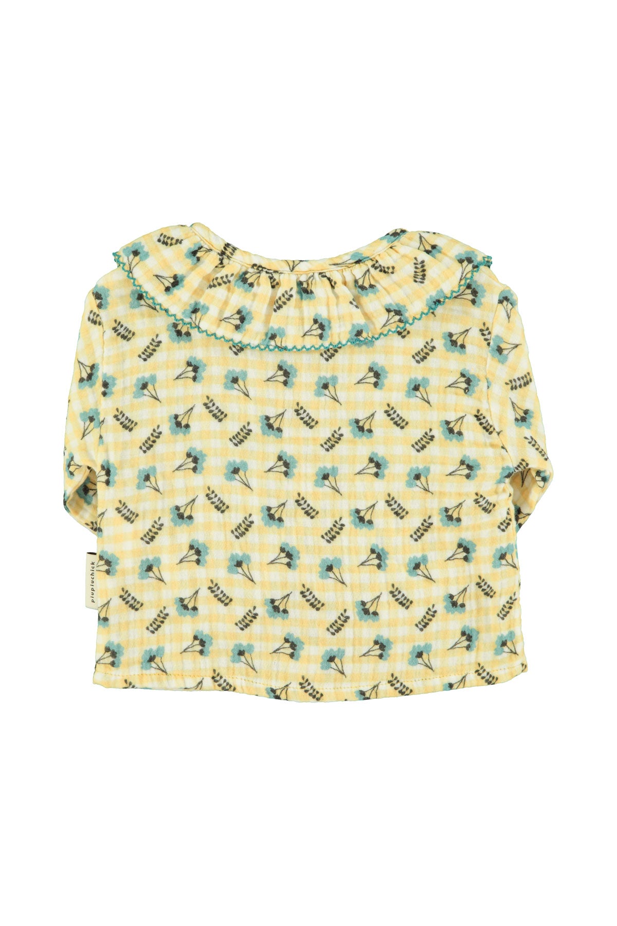 Baby Blouse with round and frilled collar. Buttons on the front. Elasticated cuffs.