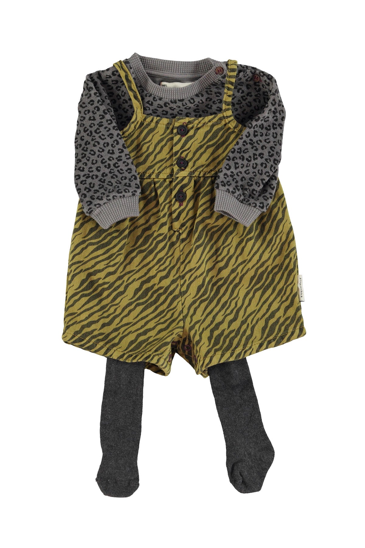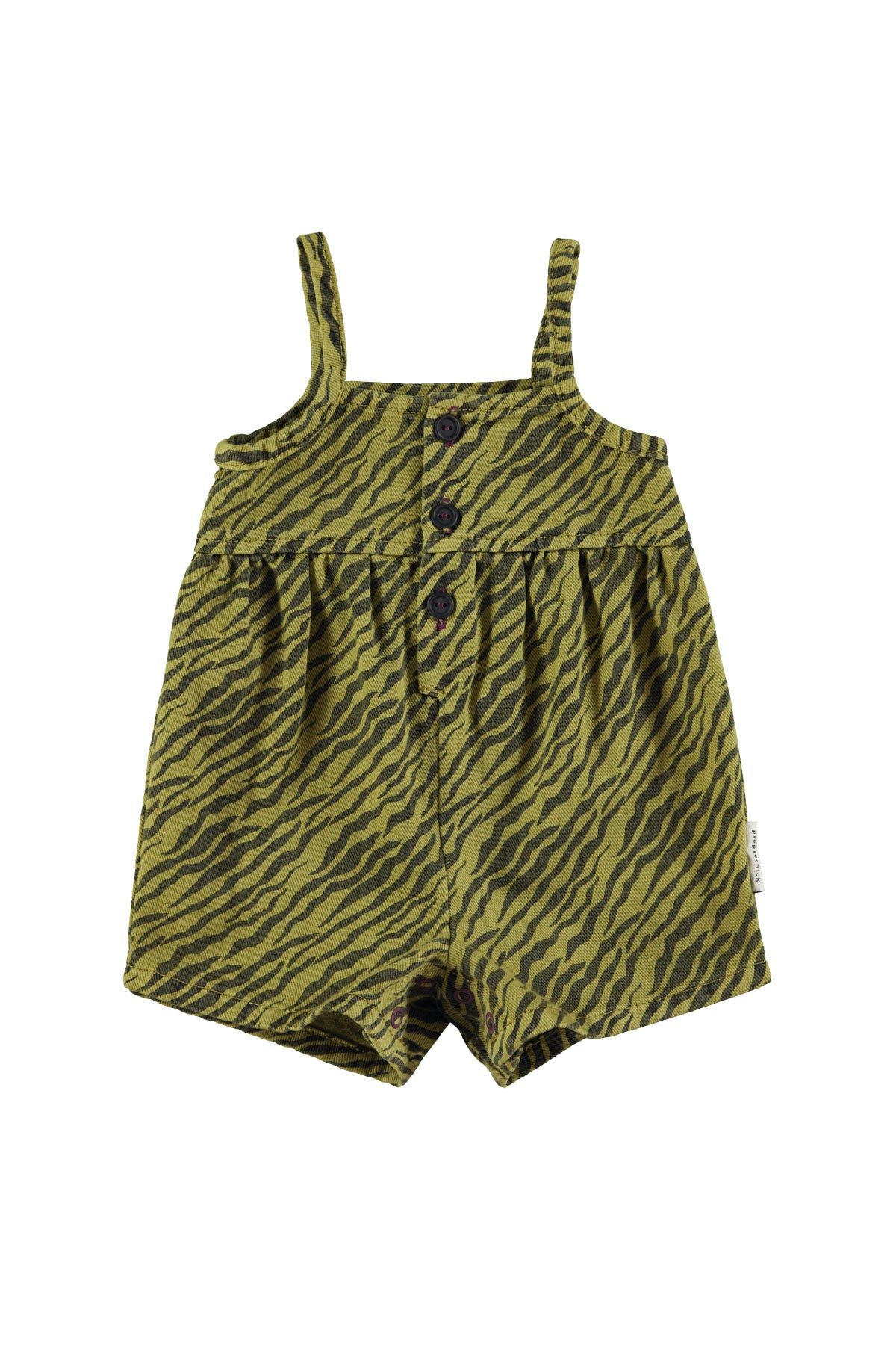 Baby short dungarees with press studs at the crotch for easy opening and buttons in the front.