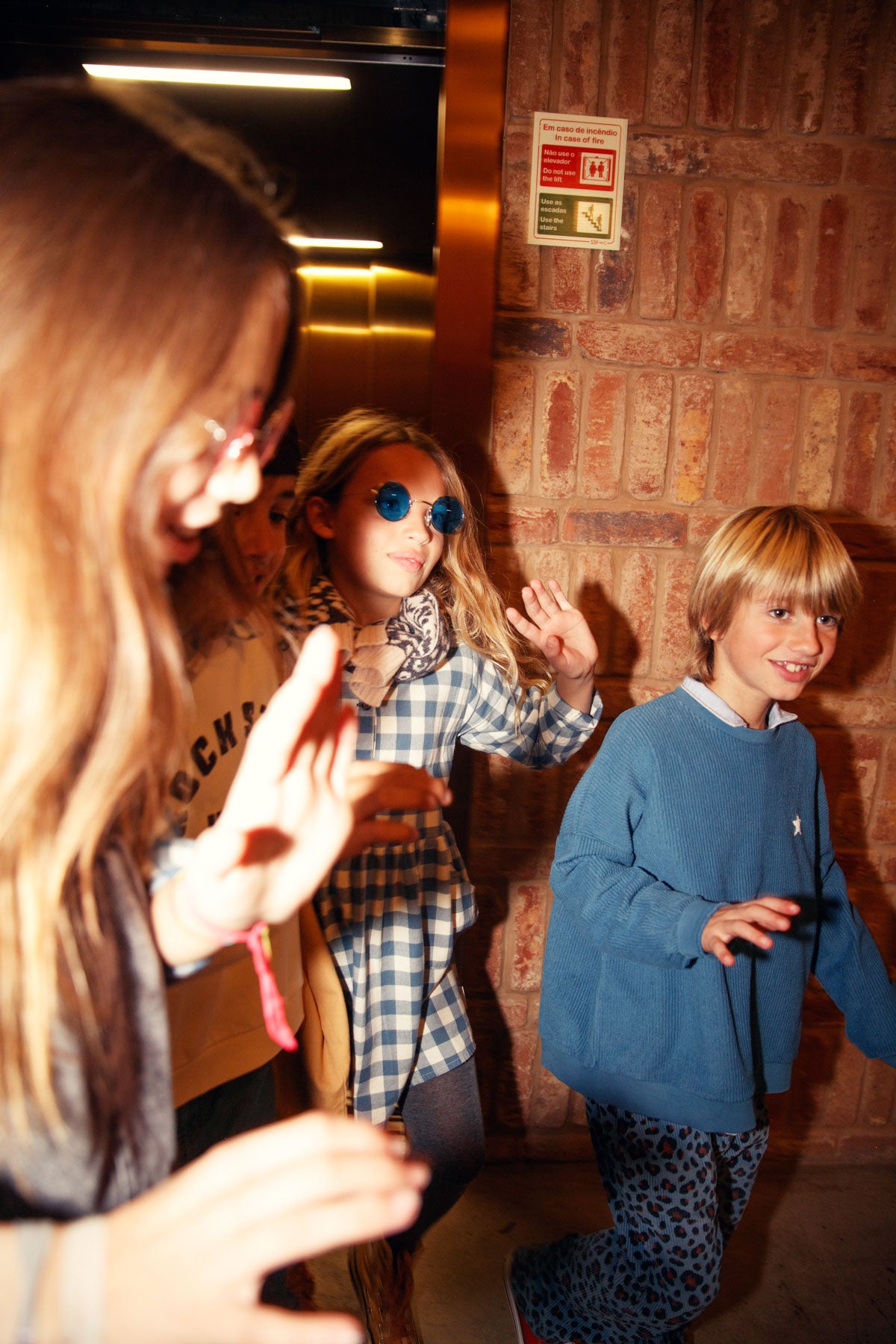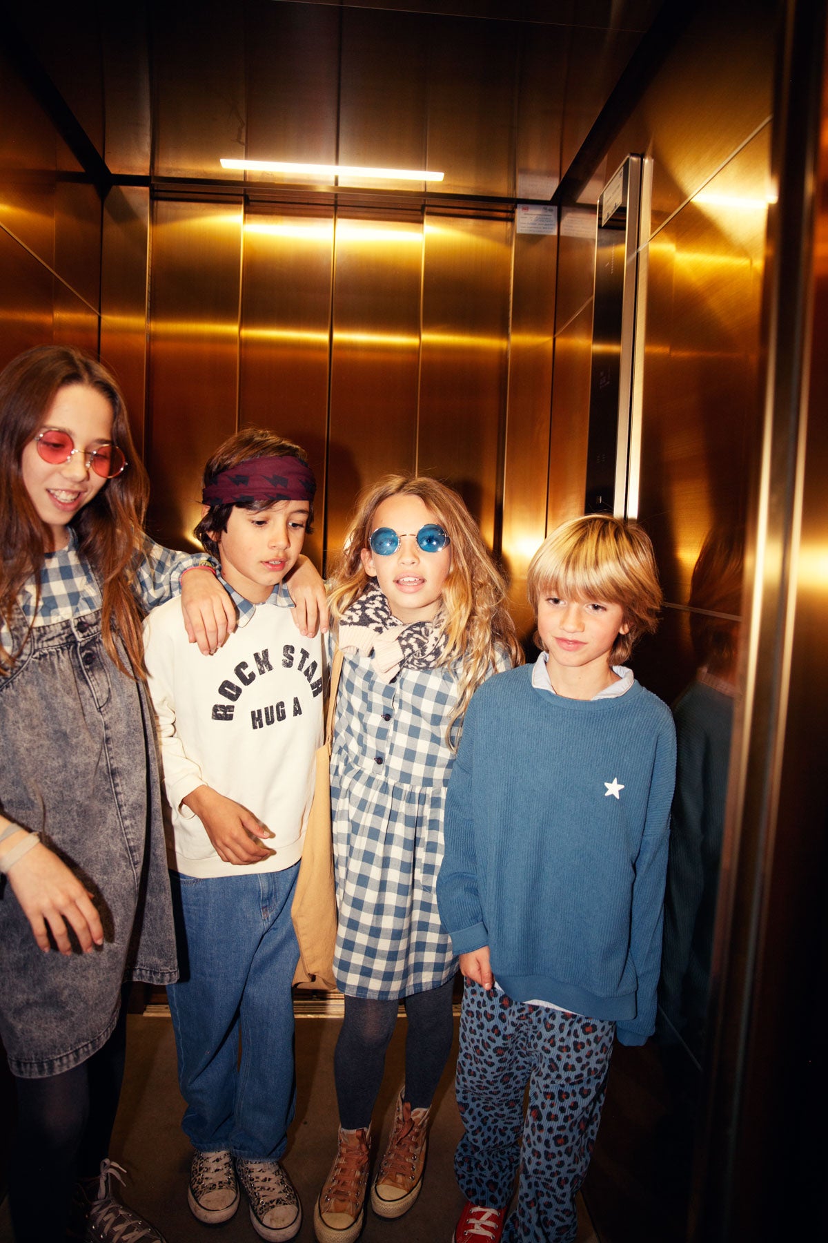 Unisex sweatshirt in textured cotton fleece. Ribbed cufs. Detailed with white star print on the chest and back logo print. Baby sizes have buttons on the shoulders.